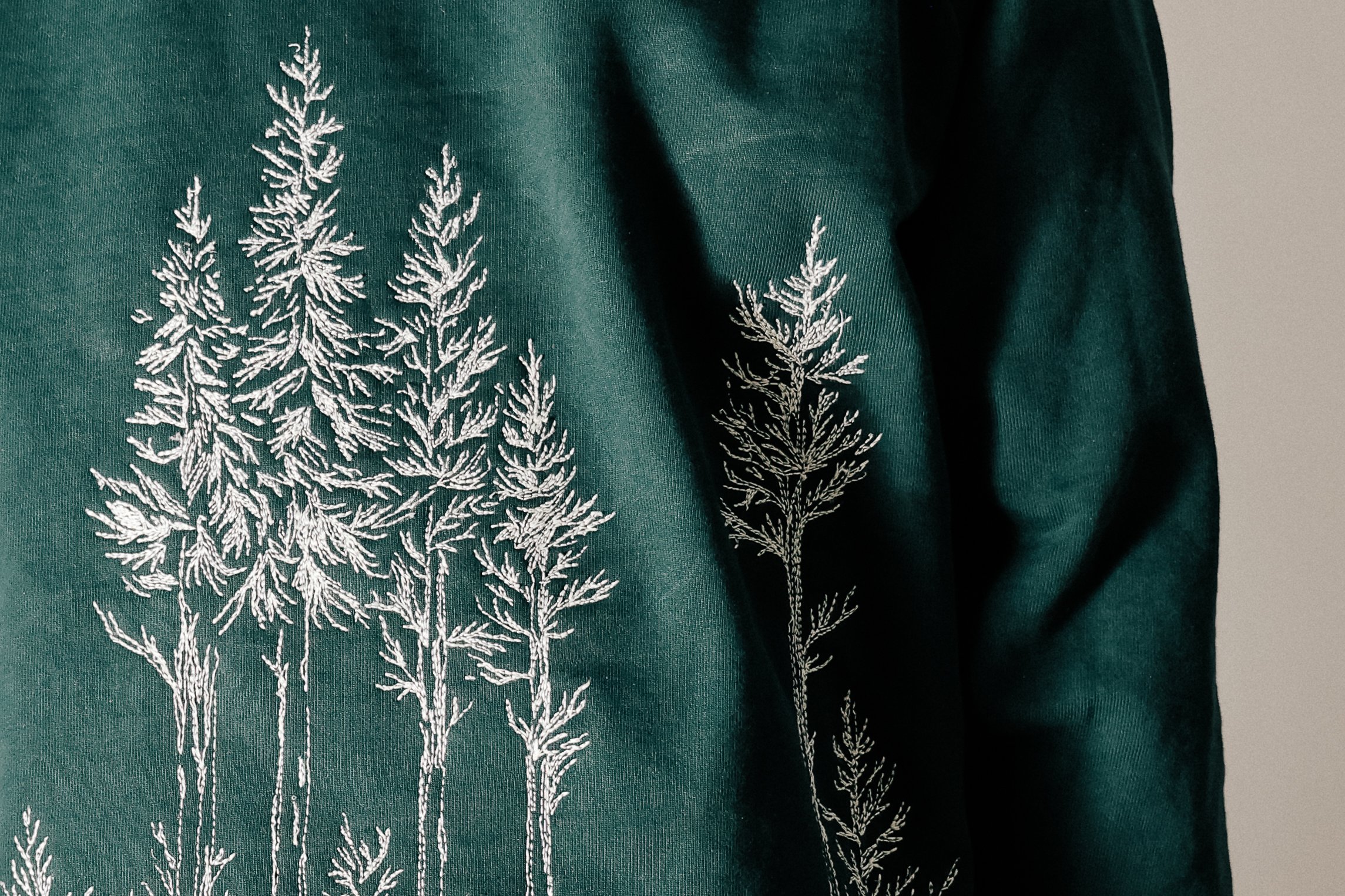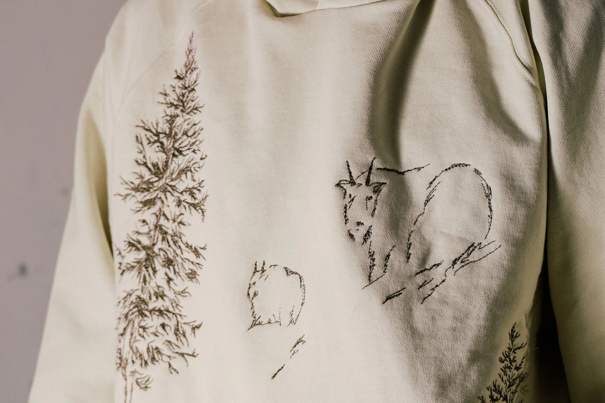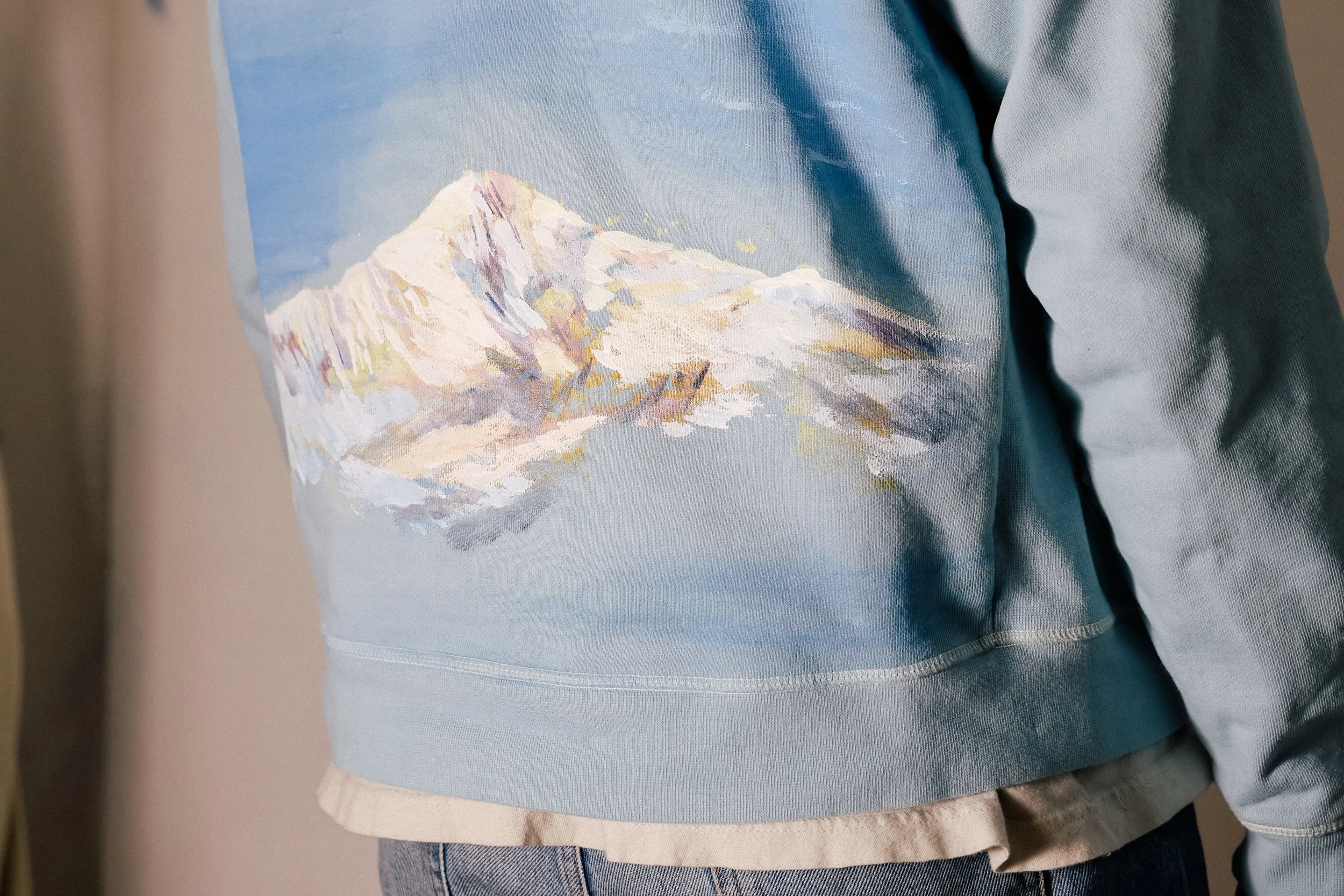 A SERIES OF ARTWORKS ON 100% ORGANIC COTTON SWEATSHIRTS, inspired by montana’s beauty
